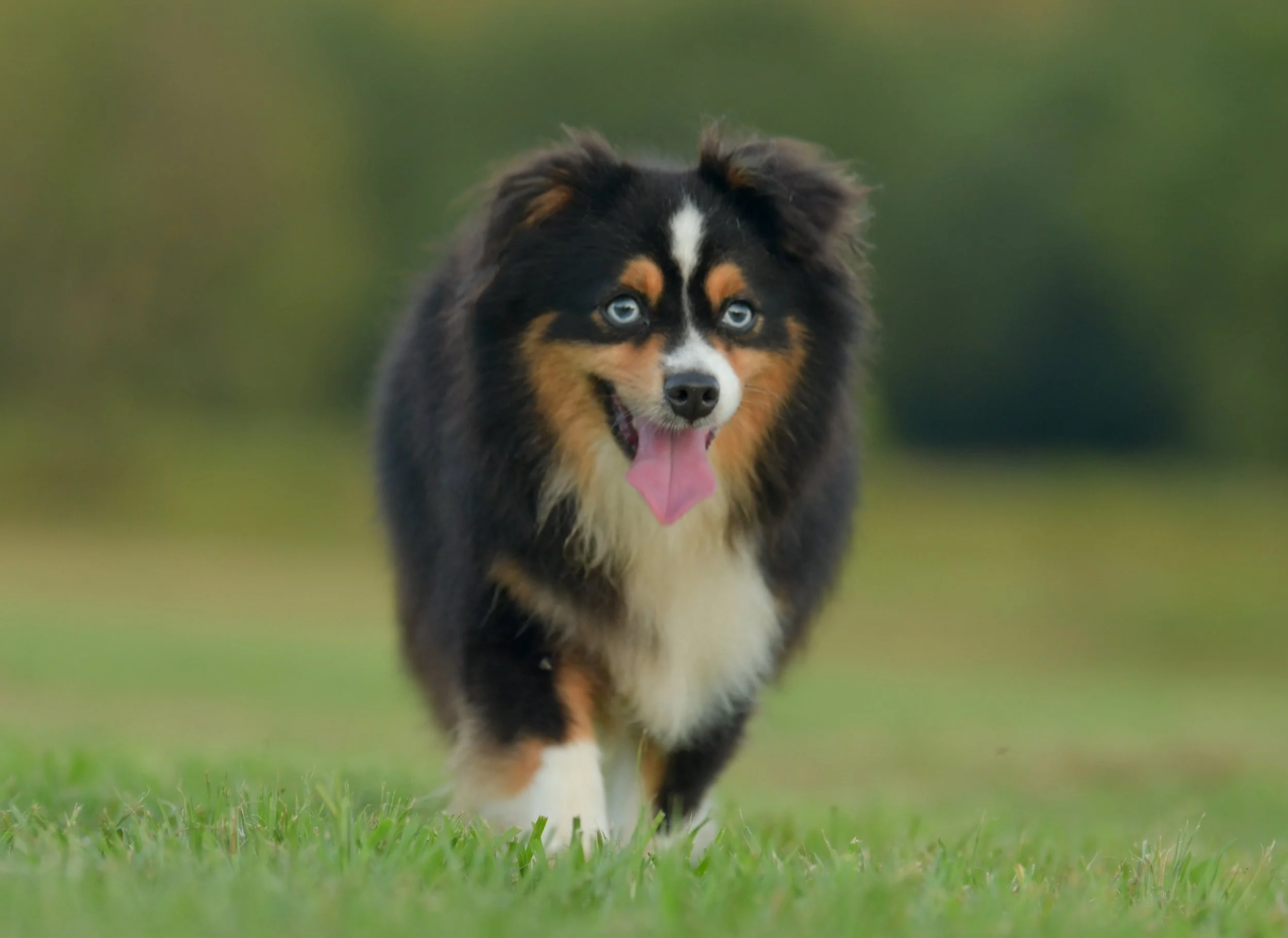 Glitter is a quiet, gentle girl. We raised her from birth and we just enjoy the heck out of her. Glitter likes to ride in the car and go on adventures with us. She loves to go to her favorite coffee shop to get a “Pup Cup.” She loves all kinds of treats and goodies; her favorite are hard boiled quail eggs! Glitter girl also does the classic “Aussie Smile.”